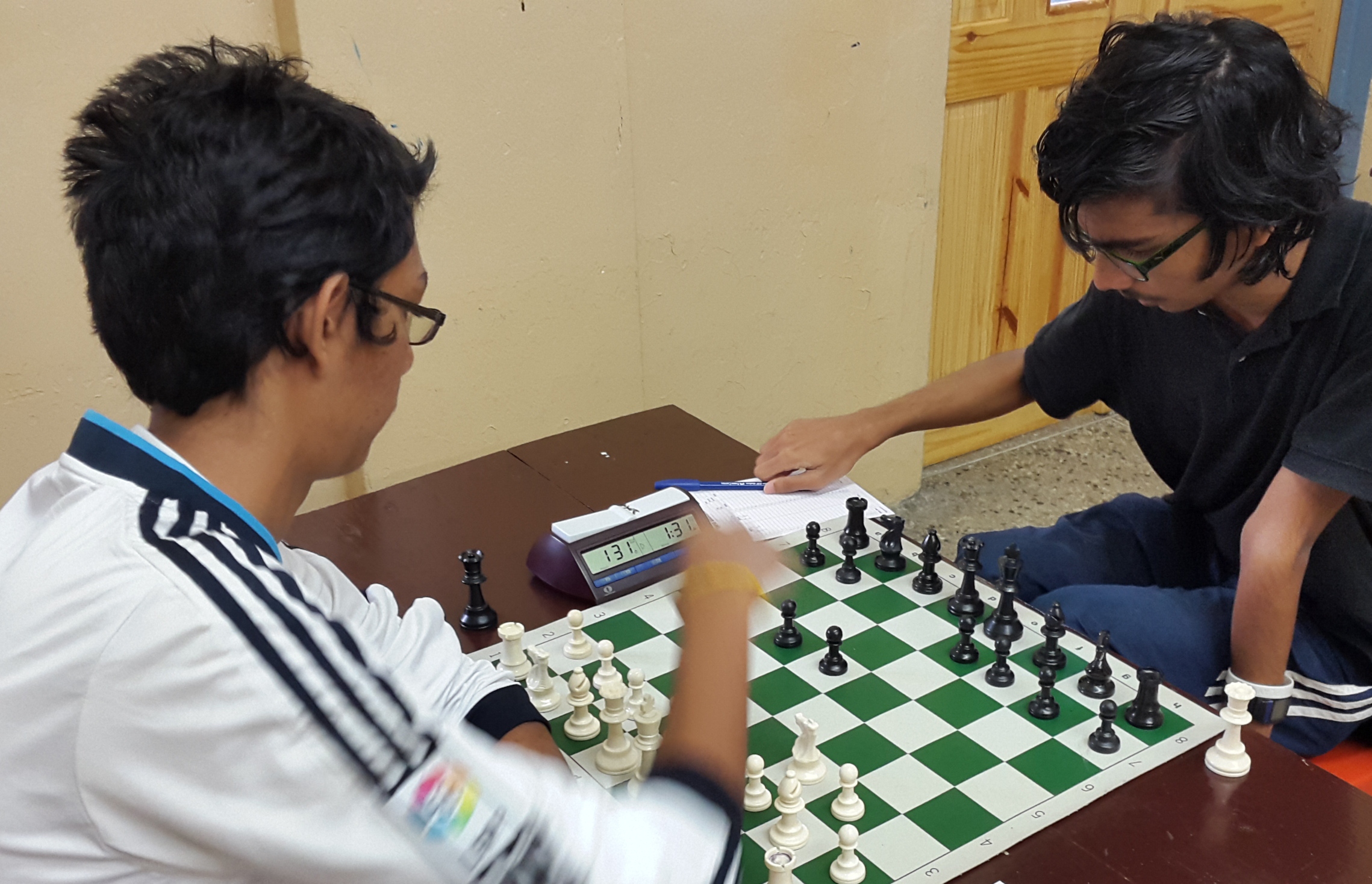 Simon Ramdath of Naparima College and Mahendra Singh of Presentation, Chaguanas, are fighting for the U18 title. Singh, brother of Open Scholarship winner and National Men’s Champion, Vishnu Singh, held Ramdath to two draws in the first two games. In game 1 Mahendra played a King’s Indian attack setup while in game 2 he played a Sicilian Dragon against Simon’s pawn to e4 opening. The two fighting draws, in which both sides missed chances under the pressure, set the stage for risky play in rounds 3 & 4 of the 4 game match. Simon in particular will have to try for a win because under the rules of the tournament if the match ends in a draw then the boys must play two 10-minute games to break the tie, followed by two 5-minute games if necessary. If the tie still can’t be broken then the younger player, Singh in this case, would become champion.